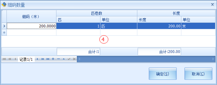○1 填寫相關信息。○2 選擇以碼的單位入庫