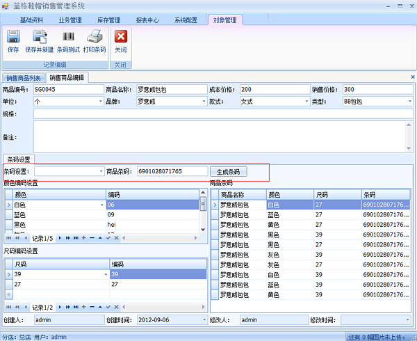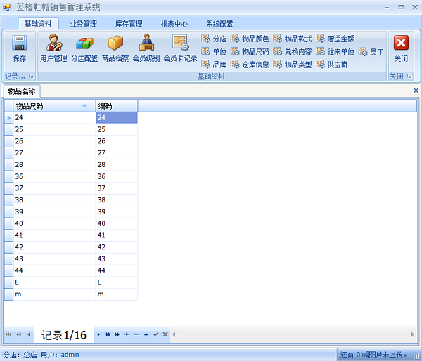 點擊【基礎(chǔ)資料】【物品尺碼】打開物品尺碼編輯界面,在這里添加物品尺碼。物品編碼是在物品生產(chǎn)條碼時加上物品尺碼編碼。填寫好以后點擊保存。