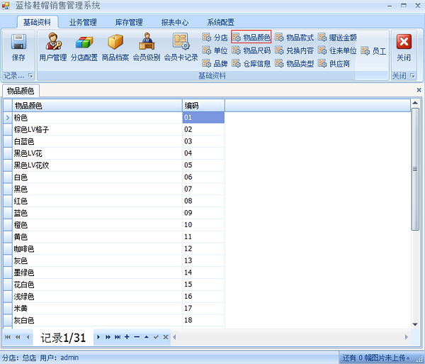 點擊【基礎(chǔ)資料】【物品顏色】打開物品顏色編輯界面,在這里添加物品顏色。物品編碼是在物品生產(chǎn)條碼時加上物品顏色編碼。填寫好以后點擊保存。