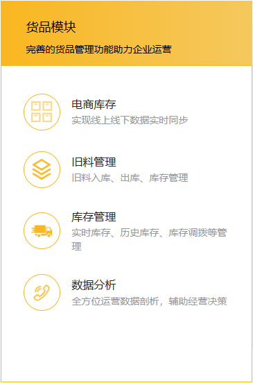 飾品出入庫、盤點,以銷定采,成本核算,動態進銷存等實時管理商品庫存。 線上線下賣貨數據實時同步,有效防止庫存積壓或超賣,協同門店和線上商 品銷售管理,商品、訂單、庫存更新。