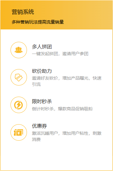 砍價拼團、抽獎、大轉盤等豐富營銷工具,快速裂變會員量,提升門店業績。
