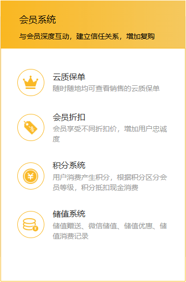 會員權益、優惠折扣、充值贈積分,老帶新客獎勵等級折扣積分優惠, 持續維護老客戶,多重激勵提高粘性。