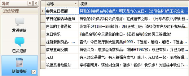 傲藍珠寶銷售軟件支持短信群發、短信模板功能,預置多種短信模板