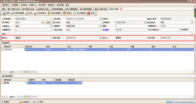在傲藍(lán)冷庫管理系統(tǒng)軟件上,我們可以清晰地知道誰新建了單據(jù),誰修改了單據(jù),誰刪除了單據(jù)。每一步操作都是可以追蹤。如下圖