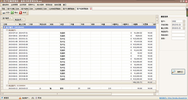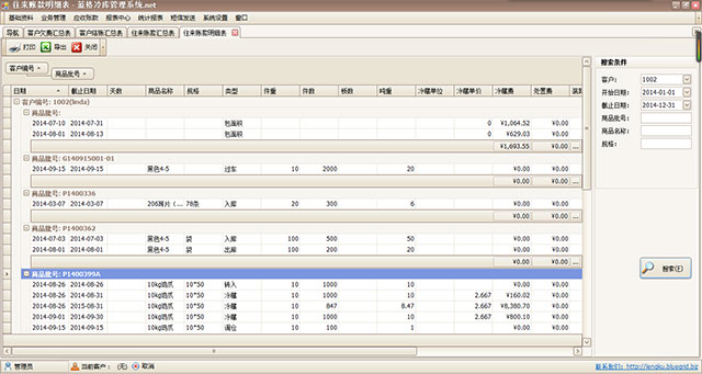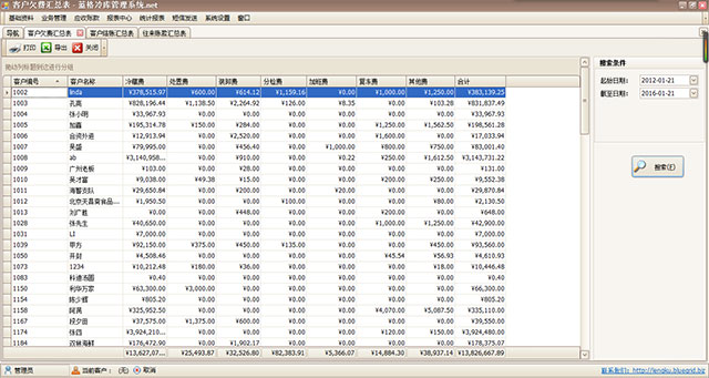 傲藍冷庫軟件中的往來帳款、客戶結帳、客戶欠費三個報表,對應著體現客戶費用應收、已收、未收三者情況。