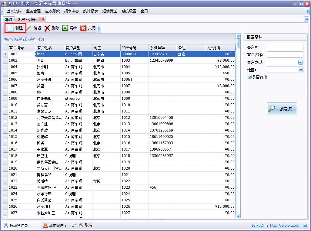 貨主資料管理是傲藍冷庫信息管理系統(tǒng)對于冷庫企業(yè)客戶資料進行管理的功能,例如:客戶類型、客戶信譽級別、客戶公司性質(zhì)、客戶企業(yè)所在地區(qū)、客戶結(jié)算方式、結(jié)算使用的現(xiàn)金銀行等信息的管理。
