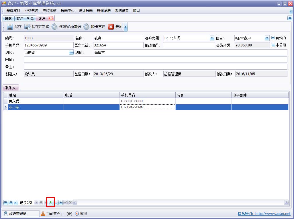 使用冷庫信息管理系統(tǒng)對客戶的一些基本信息進行錄入處理,如客戶名稱、客戶地址以及多個聯(lián)系人信息的存儲,在業(yè)務(wù)處理過程中,遇到需要聯(lián)系客戶的情況,調(diào)出客戶資料,就可相對應(yīng)具體負責這項業(yè)務(wù)的聯(lián)系人,一對一地聯(lián)系溝通,避免了一些不必要的程序。