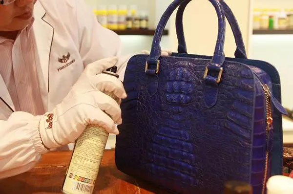 擬定保養(yǎng)方案 一個頂尖的品皮具護理師拿到一件待保養(yǎng)的皮具,并不是急于著手操作,而是要先對皮革制品進行辨認和剖析,依據(jù)不同原料和構造來擬定合理的清潔與保養(yǎng)程序。例如拿到一個FORARE鱷魚皮包包,首先要對皮質進行辨認和分類,再查看包包的臟污程度,以及光澤度、柔軟度等,來選用正確的保養(yǎng)材料和擬定操作工藝。經典款的FORARE鱷魚皮包包是選用優(yōu)質鱷魚皮制作而成,因為材質的特殊,所以不能選用一般清洗劑進行清洗,避免形成皮質發(fā)硬。