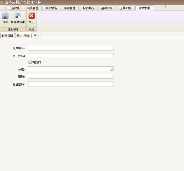 角色添加完畢,點擊保存就可以了。重新啟動程序,用新建的用戶賬號密碼登錄,就能開始工作了。傲藍皮具護理管理軟件祝您事事順心,工作開心。