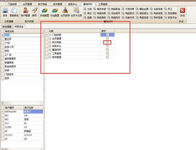 傲藍皮具護理管理軟件的用戶管理,可以用超級賬號admin建立子賬戶,并在授權時管理每個員工的操作權限,讓每個員工分工明確,做事井然有序。
