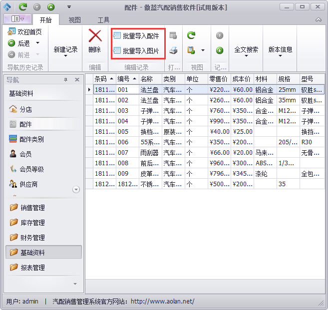 傲藍(lán)汽配進(jìn)銷存管理軟件支持兩種方式將配件資料錄入到軟件上,單個產(chǎn)品錄入和excel表格批量導(dǎo)入。