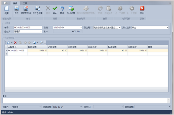 雙擊一條記錄,進入詳細頁面,如下圖所示: