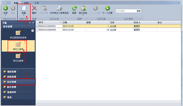在現實的庫存管理中,一般都需要進行固定時間的盤點,也會發生不小心把商品弄破而不能再銷售的情況,使用傲藍汽車維修管理系統可以管理到這些情況下的庫存變動。下面讓我們介紹一下如何建立其它入庫和出庫單。其它入庫和其它出庫單在功能上是分開的,但操作是類似的,因此下面以其它入庫單的操作為例進行說明。